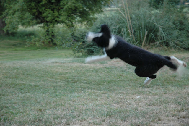Entre les divers travaux, un peu de distraction ... en particulier avec un ballon de rugby ... pour la plus grande joie de Smoky, qui nous gratifie de quelques acrobaties.